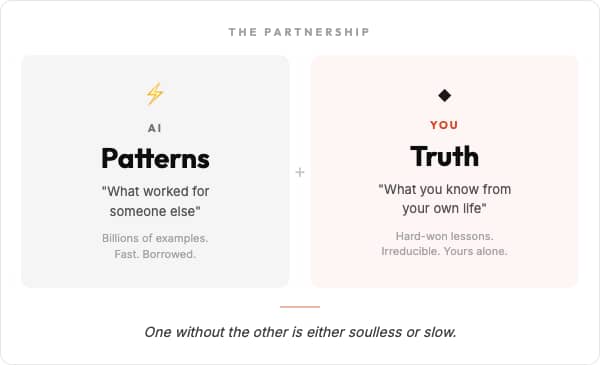 Weekly field notes on scaling intelligence without losing your humanity. Get the strategic frameworks, unfiltered insights, and human-first AI methodologies.